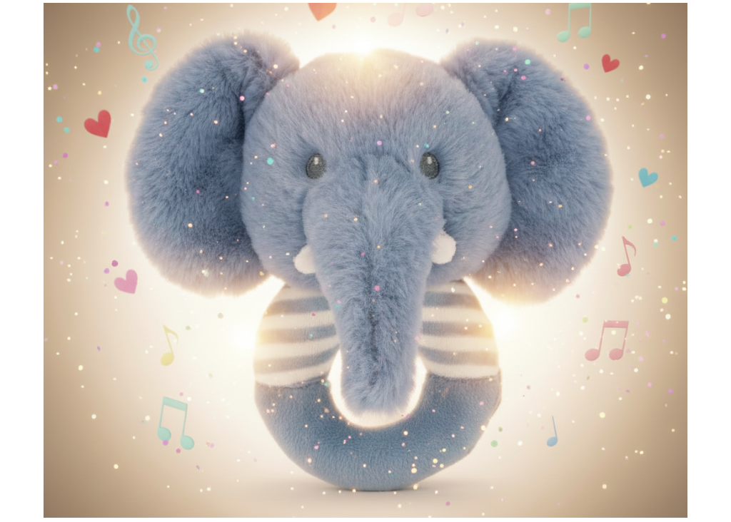 Slonić je savršen za igru, maženje i razvoj bebine motorike. Njegova mekana tekstura i nježna zvečkica potiču bebine osjetila i pružaju utjehu.